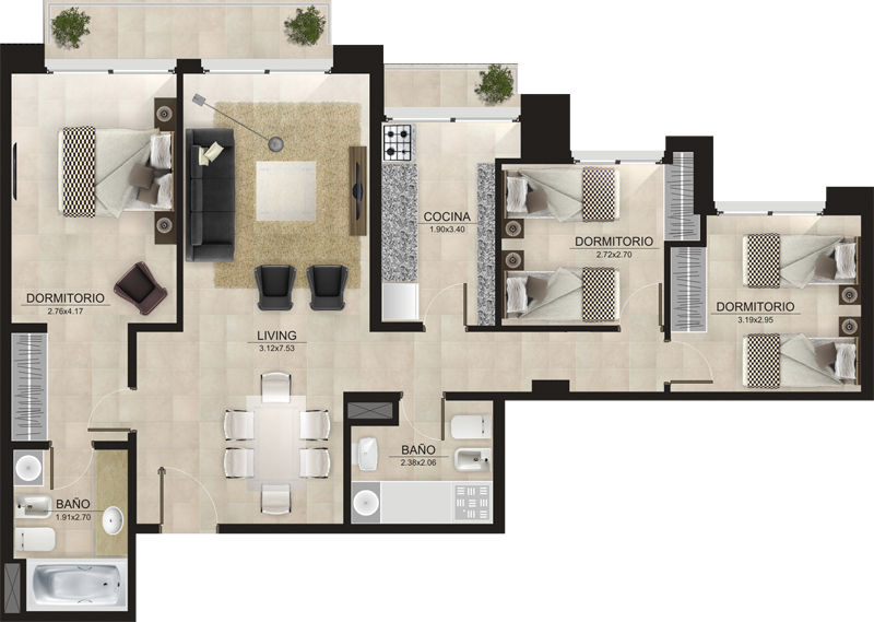 Unidades de uno, dos y tres dormitorios muy bien distribuidos, marcando un nuevo concepto de calidad, y excelencia en la zona.