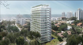 Con 2500 m2 de terreno, amplio frente norte sobre Lenguas de Diamante, �sta torre de 14 pisos ofrece 140 unidades de un dormitorio, dormitorio y medio, dos dormitorios y unidades Loft.