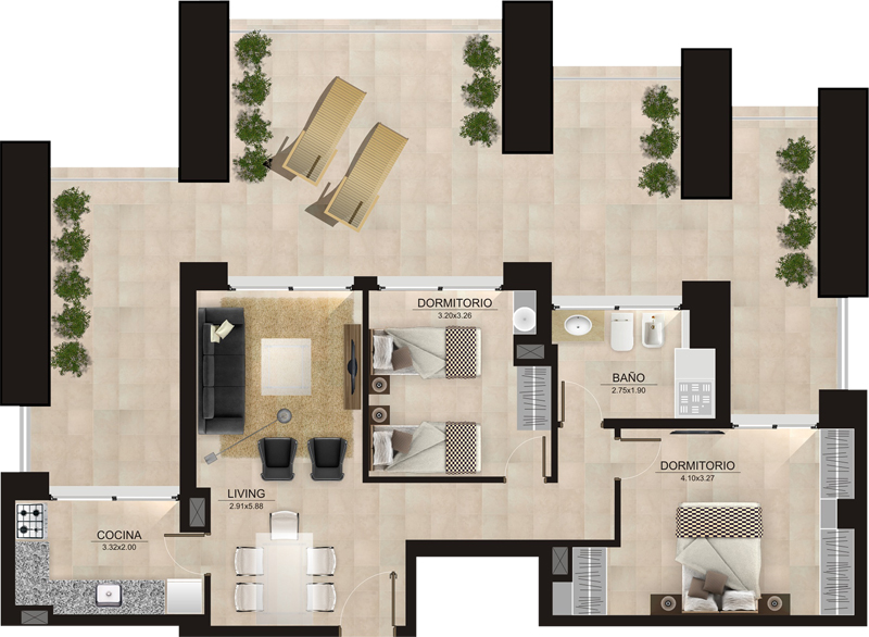 Unidades de uno, dos y tres dormitorios muy bien distribuidos, marcando un nuevo concepto de calidad, y excelencia en la zona.