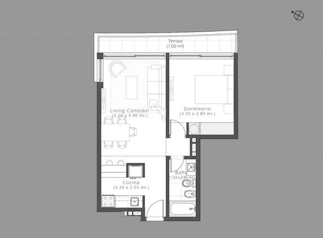 Sobre un parque de 5000 mts2 y construcci�n de alto nivel, se desarrollan tres Edificios de tres pisos cada uno, con unidades de un dormitorio, unidades de dos dormitorios con parrillero en la terraza, y cuatro unidades pent house de dos dormitorios ubicados en tercer nivel con terrazas superiores exclusivas con barbacoa, toilette y parrillero.